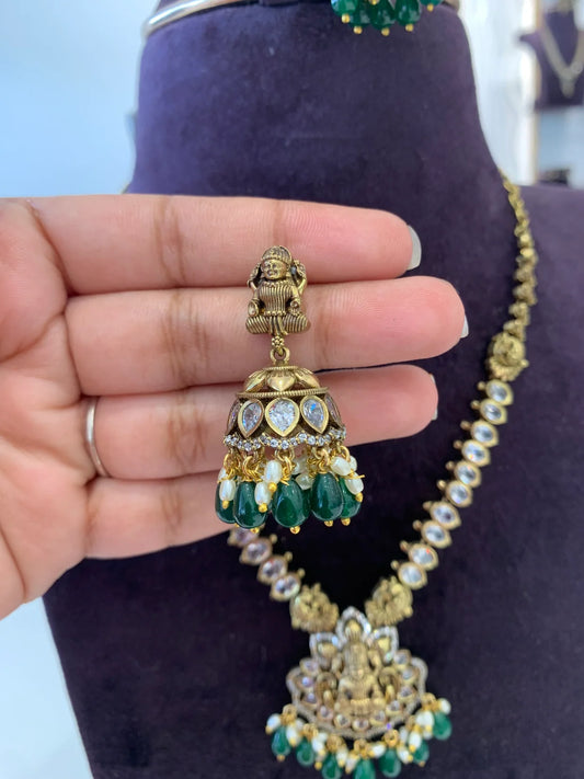 Lakshmi Antique Temple Necklace with Emerald Beads